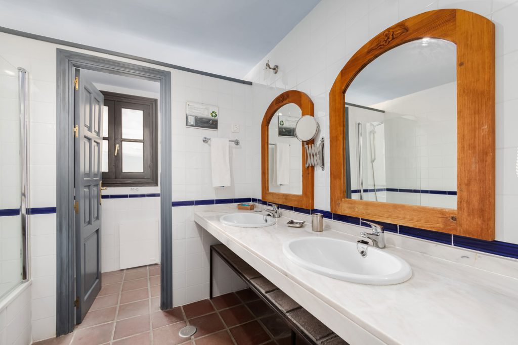 Amplia habitación de 25 m2 con zona de estar y gran cuarto de baño. Adaptable como habitación cuádruple. Poseen dos balcones o balcón y ventana.